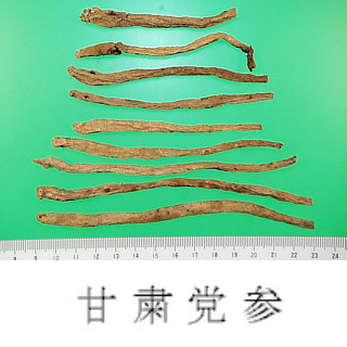 | 備考 | 『中華人民共和国薬典』収載品の C. pilosula, C. pilosula var. modesta, C. tangshen の他,四川省で C. subglobosa W.W.Sm., 四川,貴州,雲南省で C. tubulosa Kom., 四川,西蔵自治区で C. nervosa Nannf., C. canescens Nannf., 新彊ウイグル自治区で C. clematidea C.B.Clarke が使用される. 近年中国では「人参」の代用品として「党参」の需要が多い.「党参」の名前は清代の『本草従新』に初見するが,それ以来「人参」と「党参」の薬能の異同については二説がある.一つは「党参は清肺の功がある.ただし,医者はみだりに人参の代用品として党参を用いてかえって病気を悪化させている」というもの,一つは「党参は薬効が人参と同じである」とするものである.薬効の同等性については問題がありそうである. | ||||||