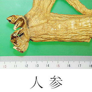 | 薬効 | [性味] 甘、微苦,微温. [帰経] 脾、肺、心、腎経. [効能] 大補元気,復脈固脱,補脾益肺,生津養血,安神益智. [主治] 体虚欲脱,肢冷脉徽,脾虚食少,肺虚喘咳,津傷口渇,内熱消渇,気血虧虚,久病虚贏,驚悸失眠,陽痿宮冷及び心力(機能)衰,心原性ショックに応用. | ||||||