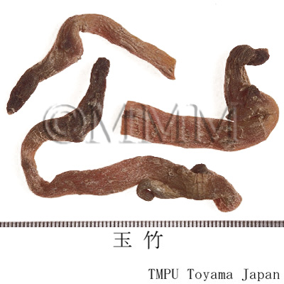 | 備考 | 『中華人民共和国薬典』には玉竹の原植物として,Polygonatum odoratum が規定される.しかし中国市場には P. macropodium なども見られ,さらに香港市場で黄精の原植物とされる P. sibiricum 等が確認された.玉竹の薬効は黄精と似ているが,玉竹は陰を補う作用が強く,黄精は気を補う作用が強い.臨床では使い分けられている. | |||||