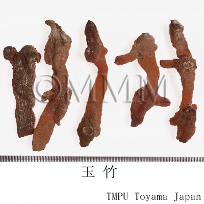 | 備考 | 『中華人民共和国薬典』には玉竹の原植物として,Polygonatum odoratum が規定される.しかし中国市場には P. macropodium なども見られ,さらに香港市場で黄精の原植物とされる P. sibiricum 等が確認された.玉竹の薬効は黄精と似ているが,玉竹は陰を補う作用が強く,黄精は気を補う作用が強い.臨床では使い分けられている. | |||||