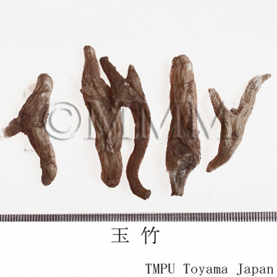 | 備考 | 『中華人民共和国薬典』には玉竹の原植物として,Polygonatum odoratum が規定される.しかし中国市場には P. macropodium なども見られ,さらに香港市場で黄精の原植物とされる P. sibiricum 等が確認された.玉竹の薬効は黄精と似ているが,玉竹は陰を補う作用が強く,黄精は気を補う作用が強い.臨床では使い分けられている. | |||||