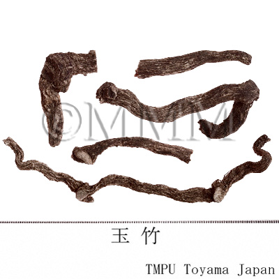 | 備考 | 『中華人民共和国薬典』には玉竹の原植物として,Polygonatum odoratum が規定される.しかし中国市場には P. macropodium なども見られ,さらに香港市場で黄精の原植物とされる P. sibiricum 等が確認された.玉竹の薬効は黄精と似ているが,玉竹は陰を補う作用が強く,黄精は気を補う作用が強い.臨床では使い分けられている. | |||||