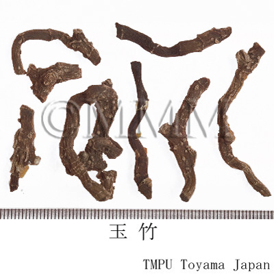 備考『中華人民共和国薬典』には玉竹の原植物として,Polygonatum odoratum が規定される.しかし中国市場には P. macropodium なども見られ,さらに香港市場で黄精の原植物とされる P. sibiricum 等が確認された.玉竹の薬効は黄精と似ているが,玉竹は陰を補う作用が強く,黄精は気を補う作用が強い.臨床では使い分けられている.