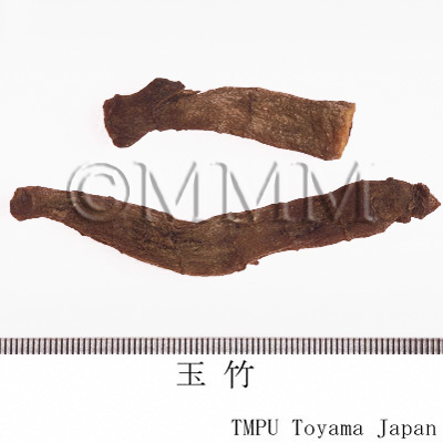 | 備考 | 『中華人民共和国薬典』には玉竹の原植物として,Polygonatum odoratum が規定される.しかし中国市場には P. macropodium なども見られ,さらに香港市場で黄精の原植物とされる P. sibiricum 等が確認された.玉竹の薬効は黄精と似ているが,玉竹は陰を補う作用が強く,黄精は気を補う作用が強い.臨床では使い分けられている. | |||||