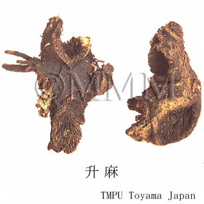 | 備考 | 中国南部でキク科 Serratula chinensis S. Moore の根が使用される(広升麻).Cimicifuga属由来の升麻中にバラ科 Aruncus sylvester Kostel の根茎が混入されることがある.近年中国では升麻としてキツネノマゴ科 Strobilanthes forrestii Diels の根茎が流通するが,偽品であり注意を要する. | ||||||