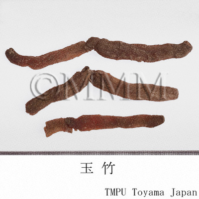 | 備考 | 『中華人民共和国薬典』には玉竹の原植物として,Polygonatum odoratum が規定される.しかし中国市場には P. macropodium なども見られ,さらに香港市場で黄精の原植物とされる P. sibiricum 等が確認された.玉竹の薬効は黄精と似ているが,玉竹は陰を補う作用が強く,黄精は気を補う作用が強い.臨床では使い分けられている. | |||||