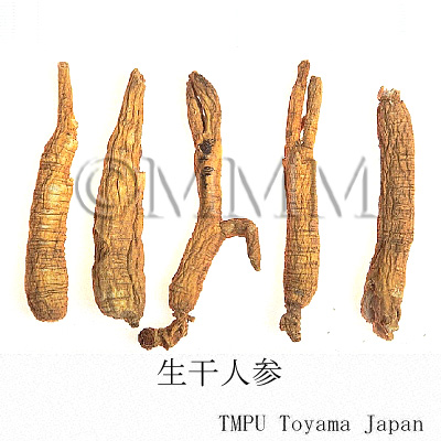 | 薬効 | [性味] 甘、微苦,微温. [帰経] 脾、肺、心、腎経. [効能] 大補元気,復脈固脱,補脾益肺,生津養血,安神益智. [主治] 体虚欲脱,肢冷脉徽,脾虚食少,肺虚喘咳,津傷口渇,内熱消渇,気血虧虚,久病虚贏,驚悸失眠,陽痿宮冷及び心力(機能)衰,心原性ショックに応用. | ||||||