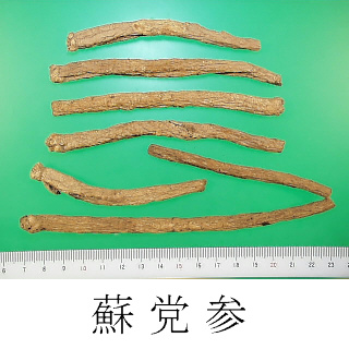 | 備考 | 『中華人民共和国薬典』収載品の C. pilosula, C. pilosula var. modesta, C. tangshen の他,四川省で C. subglobosa W.W.Sm., 四川,貴州,雲南省で C. tubulosa Kom., 四川,西蔵自治区で C. nervosa Nannf., C. canescens Nannf., 新彊ウイグル自治区で C. clematidea C.B.Clarke が使用される. 近年中国では「人参」の代用品として「党参」の需要が多い.「党参」の名前は清代の『本草従新』に初見するが,それ以来「人参」と「党参」の薬能の異同については二説がある.一つは「党参は清肺の功がある.ただし,医者はみだりに人参の代用品として党参を用いてかえって病気を悪化させている」というもの,一つは「党参は薬効が人参と同じである」とするものである.薬効の同等性については問題がありそうである. | ||||||
