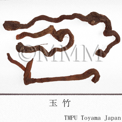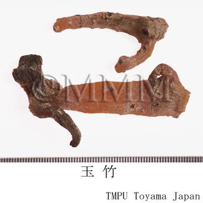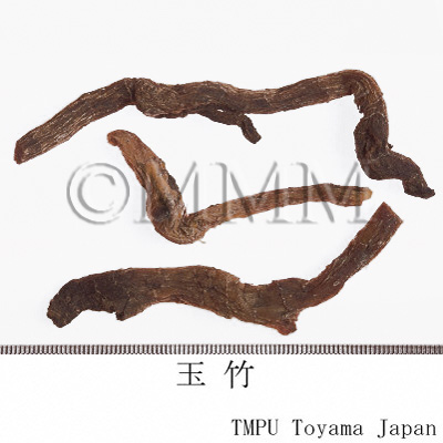 | 備考 | 『中華人民共和国薬典』には玉竹の原植物として,Polygonatum odoratum が規定される.しかし中国市場には P. macropodium なども見られ,さらに香港市場で黄精の原植物とされる P. sibiricum 等が確認された.玉竹の薬効は黄精と似ているが,玉竹は陰を補う作用が強く,黄精は気を補う作用が強い.臨床では使い分けられている. | |||||