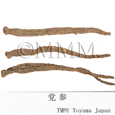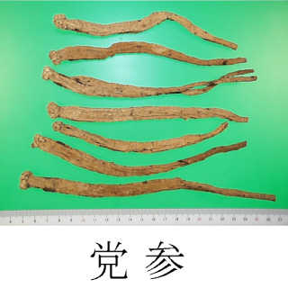 備考『中華人民共和国薬典』収載品の C. pilosula, C. pilosula var. modesta, C. tangshen の他,四川省で C. subglobosa W.W.Sm., 四川,貴州,雲南省で C. tubulosa Kom., 四川,西蔵自治区で C. nervosa Nannf., C. canescens Nannf., 新彊ウイグル自治区で C. clematidea C.B.Clarke が使用される.