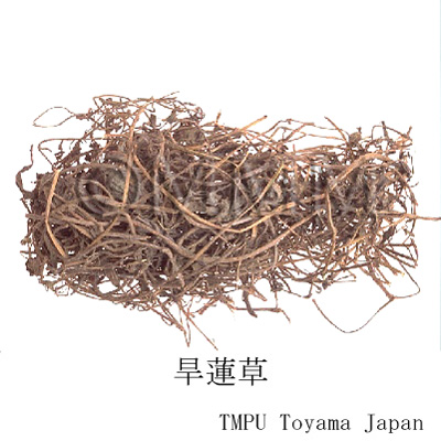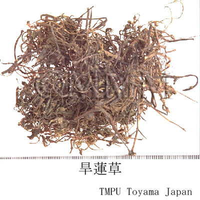 | 備考 | 中国南部の浙江,江蘇,上海地区では,オトギリソウ科/Hypericaceae の トモエソウ Hypericum ascyron L. の全草を,旱蓮草,紅旱蓮草などと称し薬用にする.また北方地区の河北,河南,陜西省などでは,バラ科/Rosaceae の Potentilla paradoxa Nutt. (仰臥委陵采) の全草を挫切したものを旱蓮草と称して薬用にしている.福建省漳州地区ではキク科/Compositae の ハマグルマ Wedelia prostrata Hemsl. を旱蓮草と称している. また台湾では,キク科/Compositae の クマノギク Wedelia chinensis (Osbeck) Merr. (= W. calendulacea Less.) の全草を旱蓮草,田窩草,黄花田路草,蛇舌黄などと称している. | |||||