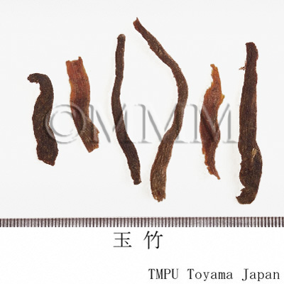 | 備考 | 『中華人民共和国薬典』には玉竹の原植物として,Polygonatum odoratum が規定される.しかし中国市場には P. macropodium なども見られ,さらに香港市場で黄精の原植物とされる P. sibiricum 等が確認された.玉竹の薬効は黄精と似ているが,玉竹は陰を補う作用が強く,黄精は気を補う作用が強い.臨床では使い分けられている. | |||||