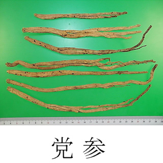 | 備考 | 『中華人民共和国薬典』収載品の C. pilosula, C. pilosula var. modesta, C. tangshen の他,四川省で C. subglobosa W.W.Sm., 四川,貴州,雲南省で C. tubulosa Kom., 四川,西蔵自治区で C. nervosa Nannf., C. canescens Nannf., 新彊ウイグル自治区で C. clematidea C.B.Clarke が使用される. 近年中国では「人参」の代用品として「党参」の需要が多い.「党参」の名前は清代の『本草従新』に初見するが,それ以来「人参」と「党参」の薬能の異同については二説がある.一つは「党参は清肺の功がある.ただし,医者はみだりに人参の代用品として党参を用いてかえって病気を悪化させている」というもの,一つは「党参は薬効が人参と同じである」とするものである.薬効の同等性については問題がありそうである. | ||||||