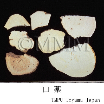 | 備考 | 日局18には ヤマノイモ Dioscorea japonica と ナガイモ D. batatas が,『中華人民共和国薬典 2020年版』には D. opposita がそれぞれ規定される.河南省の山薬は「淮山薬」,「淮山」と称され,D. opposita に由来し,一方広西壮族自治区の山薬は ダイジョ D. alata L. に由来する. 日本産の山薬は食用として栽培されたナガイモを原料とする.ナガイモは食用として広く栽培され,多数の品種がある.品種はナガイモ群,イチョウイモ群,丹波イモ群に大別される.ヤマノイモとの中間型もある. 台湾産の山薬は D. alata L. や D. doryphora Hance,その他偽品としてヒルガオ科 (Convolvulaceae)の アメリカイモ Ipomoea batatas (L.) Poir の塊根がある. 日本産と中国産では加工方法にも違いがあり,日本産は皮を剥いだ後そのまま加熱乾燥するが,中国産は圧縮して水分をある程度除去して乾燥する(毛条山薬)かまたはチョーク状に加工する(光山薬).日本産の品質が良いとされる. | ||||||
