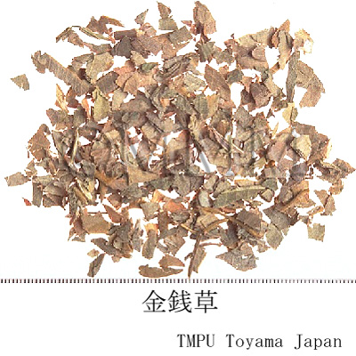 | 備考 | 現在日本で入手できる商品は香港市場品である. 中国南部諸省で胆石症や尿石症の特効薬と称して市販されている.その他,タデ科/Polygonaceae の ミズヒキ Polygonum filiforme Thunb. = P. virginianum L. var. filiforme (Thunb.) Merr.; Tovara filiformis (Thunb.) Nakai; T. virginiana (L.) Rafin. var. filiformis (Thunb.) Steward; Sunania filiformis (Thunb.) Rafin. の全草,サクラソウ科/Primulaceae の Lysimachia christinae Hance. の全草など多種の植物が金銭草と称される. | |||||