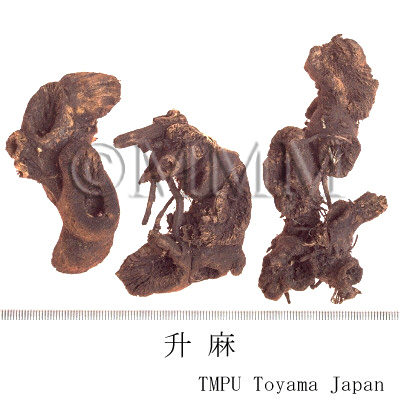 | 備考 | 中国南部でキク科 Serratula chinensis S. Moore の根が使用される(広升麻).Cimicifuga属由来の升麻中にバラ科 Aruncus sylvester Kostel の根茎が混入されることがある.近年中国では升麻としてキツネノマゴ科 Strobilanthes forrestii Diels の根茎が流通するが,偽品であり注意を要する. | ||||||