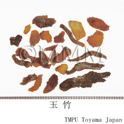 | 備考 | 『中華人民共和国薬典』には玉竹の原植物として,Polygonatum odoratum が規定される.しかし中国市場には P. macropodium なども見られ,さらに香港市場で黄精の原植物とされる P. sibiricum 等が確認された.玉竹の薬効は黄精と似ているが,玉竹は陰を補う作用が強く,黄精は気を補う作用が強い.臨床では使い分けられている. | |||||