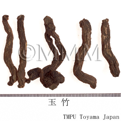 | 備考 | 『中華人民共和国薬典』には玉竹の原植物として,Polygonatum odoratum が規定される.しかし中国市場には P. macropodium なども見られ,さらに香港市場で黄精の原植物とされる P. sibiricum 等が確認された.玉竹の薬効は黄精と似ているが,玉竹は陰を補う作用が強く,黄精は気を補う作用が強い.臨床では使い分けられている. | |||||