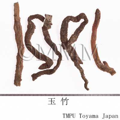 | 備考 | 『中華人民共和国薬典』には玉竹の原植物として,Polygonatum odoratum が規定される.しかし中国市場には P. macropodium なども見られ,さらに香港市場で黄精の原植物とされる P. sibiricum 等が確認された.玉竹の薬効は黄精と似ているが,玉竹は陰を補う作用が強く,黄精は気を補う作用が強い.臨床では使い分けられている. | |||||