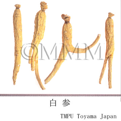 | 薬効 | [性味] 甘、微苦,微温. [帰経] 脾、肺、心、腎経. [効能] 大補元気,復脈固脱,補脾益肺,生津養血,安神益智. [主治] 体虚欲脱,肢冷脉徽,脾虚食少,肺虚喘咳,津傷口渇,内熱消渇,気血虧虚,久病虚贏,驚悸失眠,陽痿宮冷及び心力(機能)衰,心原性ショックに応用. | ||||||