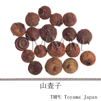 | 薬効 | [性味] 酸、甘,徽温. [帰経] 脾、胃、肝経. [効能] 消食健胃,行気散瘀,化濁降脂. [主治] 肉食積滞,胃脘脹満,瀉痢腹痛,瘀血経閉,産後瘀阻,心腹刺痛,胸痺心痛,疝気疼痛,高脂血症に用いる. | ||||||