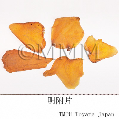- 白附片:黒附片に準ずるが,外皮をはぎ,最終工程で硫黄により白く薫蒸したもの.