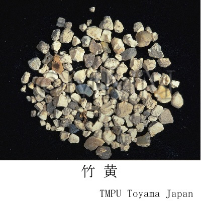 | 備考 | タケ科/Bambusaceae の ハチク Phyllostacys nigra Munro var. henonis Staph,マダケ Phyllostacys bambusoides Sieb. et Zucc. (P. reticulata C. Kock), その他タケ類の茎 (竹桿) の節孔の中に病的に生成した塊状物質を採り出したもの.天然品が最佳であるが,得がたいので,現在では人工的に竹桿を加熱して,竹節中に竹瀝 (竹桿を切って火炙して切口から滴下してくる液汁) を出させ, 自然に凝固したものを採りだし天竹黄と称するが, 品質がまちまちで劣品である. 産地によって雲南竹黄 (上等品は瓦片状を呈し, 一面白色, 一面黒色.次品は不斉塊状: 下等品は粉末状で, 米黄とも称する), 竹黄精 (白色玉質の顆粒で上品である), 西竹黄 (老竹黄, 洋竹黄とも称す. ベトナム, マレー, スマトラなどから産し, 不斉塊粒, 灰白色または透明黄白色, ときに泥塊, 炭塊などが混る), 広竹黄 (土竹黄とも称し,広東,広西に産するもので, 品質には差異がある. 上等品は老竹黄に似, 下等品は泥などが多くて重い) などがある. | |||||