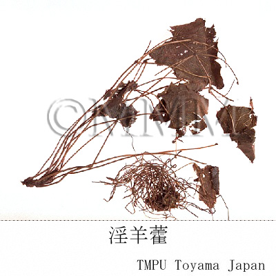 | 備考 | 『中華人民共和国薬典』 (2020) には「淫羊藿」として Epimedium brevicornum Maxim., E. sagittatum Maxim., E. pubescense Maxim., E. koreanum Nakai の地上部が規定される. 中国四川省産の淫羊藿は E. pubescens, E. acuminatum Franch., E. wushanense, E. sutchuenense Franch. and E. davidii Franch.などが主流である. 中国東北部および朝鮮半島北部産淫羊藿は E. koreanum Nakai およびキバナイカリソウ E. cremeum Nakai であろう. 日本産はイカリソウ E. grandiflorum Morr. var. thunbergianum Nakai (長野県産) およびウラジロイカリソウ E. sempervirens Nakai var. hypoglaucum Ohwi (新潟県産)の 葉または地上部を乾燥したもの.日本では地下部を「イカリソウ根」と称して別に市販される (B2). | ||||||