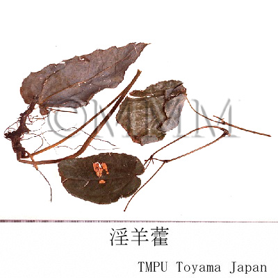 日本産はイカリソウ E. grandiflorum Morr. var. thunbergianum Nakai (長野県産) およびウラジロイカリソウ E. sempervirens Nakai var. hypoglaucum Ohwi (新潟県産)の 葉または地上部を乾燥したもの.日本では地下部を「イカリソウ根」と称して別に市販される (B2).