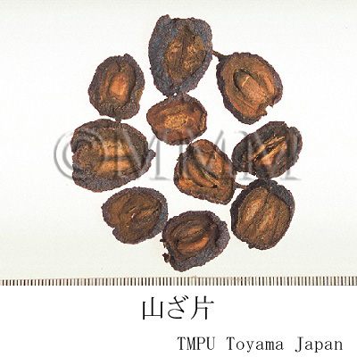 | 薬効 | [性味] 酸、甘,徽温. [帰経] 脾、胃、肝経. [効能] 消食健胃,行気散瘀,化濁降脂. [主治] 肉食積滞,胃脘脹満,瀉痢腹痛,瘀血経閉,産後瘀阻,心腹刺痛,胸痺心痛,疝気疼痛,高脂血症に用いる. | ||||||
