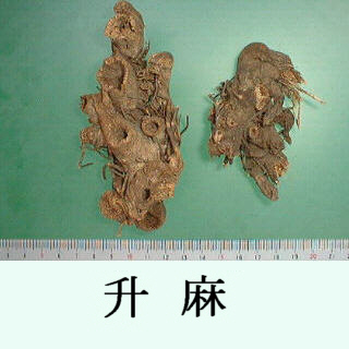 | 備考 | 中国南部でキク科 Serratula chinensis S. Moore の根が使用される(広升麻).Cimicifuga属由来の升麻中にバラ科 Aruncus sylvester Kostel の根茎が混入されることがある.近年中国では升麻としてキツネノマゴ科 Strobilanthes forrestii Diels の根茎が流通するが,偽品であり注意を要する. | ||||||