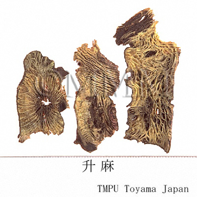 | 備考 | 中国南部でキク科 Serratula chinensis S. Moore の根が使用される(広升麻).Cimicifuga属由来の升麻中にバラ科 Aruncus sylvester Kostel の根茎が混入されることがある.近年中国では升麻としてキツネノマゴ科 Strobilanthes forrestii Diels の根茎が流通するが,偽品であり注意を要する. | ||||||