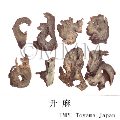 | 備考 | 中国南部でキク科 Serratula chinensis S. Moore の根が使用される(広升麻).Cimicifuga属由来の升麻中にバラ科 Aruncus sylvester Kostel の根茎が混入されることがある.近年中国では升麻としてキツネノマゴ科 Strobilanthes forrestii Diels の根茎が流通するが,偽品であり注意を要する. | ||||||