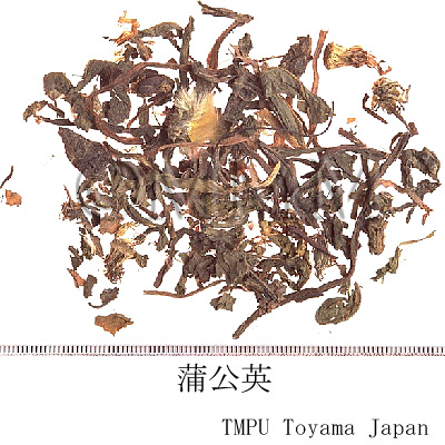 | 備考 | 『中華人民共和国薬典』(2020)には モウコタンポポ Taraxacum mongolicum Hand.-Mazz., シナタンポポ T. borealisinense Kitam. [T. sinicum Kitag. (CP2015)] の全草が規定される. その他基源植物として T. erythropodium Kitag., T. ceratophorum DC., T. pseudo-albidum Kitag., T. pseudo-albidum Kitag. var. lutescens Kitag., T. ohwianum Kitam., T. dissectum Ledeb., T. asiaticum Dahlst., T. cuspidatum Dahlst., T. officinale Weber セイヨウタンポポなどが挙げられる.以上のものは東北,華北で主に用いられる.市販品は多くの混入が認められる.華南地区で蒲公英または土公英と称して用いられるものは,キク科のウスベニニガナ Emilia sonchifolia (L.) DC. および Elephantopus scaber L. の全草である.雲南省ではコウゾリナ属 Picris divaricata Vent. を「蒲公英」と称している. 台湾では Ixeris chinensis (Thunb.) Nakai ウサギソウの全草を蒲公英と称する.また,I. laevigata (Blume) Sch.-Bip. ex Maxim. var. oldhami (Maxim.) Kitam. アツバニガナの全草も同様に用いられる. 韓国産蒲公英は主に T. mongolicum Hand.-Mazz. var. corniculatum Nakai ケイリンタンポポ, T. asiaticum Dahlst. などの全草である.ときに根も蒲公英根と称し出まわる. 日本産は主に T. japonicum Koidz. カンサイタンポポ および T. officinale の根で,「蒲公英根」と称する. | ||||||