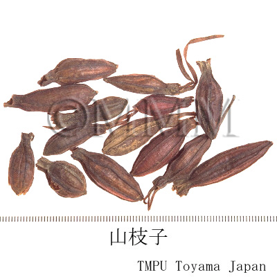 | 一般生薬名 | 山梔子, Shanzhizi, Zhizi, Gardeniae Fructus (JP18), (CP2020), Gardenia Fruit (JP18), Cape Jasmine Fruit (CP2020) | |||||