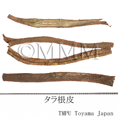 | 一般生薬名 | たら根皮, Tarakompi, たらの木, Taranoki, Araliae Radicis Cortex (Non-JPS202), Aralia Elata Root Bark (Non-JPS2022) |