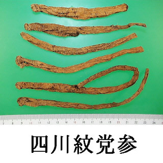 | 原植物名 | Codonopsis pilosula Nannfeldt1 or Codonopsis tangshen Oliver, ヒカゲノツルニンジン1 | ||||||