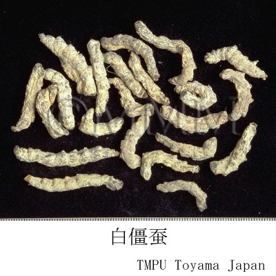 | 原植物名 | Bombyx mori Linn.1の幼虫が,白殭菌 Beauveria bassiana Vuillemin の感染により硬直死した乾燥虫体, カイコガ1 | |||||