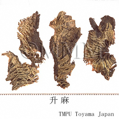備考中国南部でキク科 Serratula chinensis S. Moore の根が使用される(広升麻).Cimicifuga属由来の升麻中にバラ科 Aruncus sylvester Kostel の根茎が混入されることがある.近年中国では升麻としてキツネノマゴ科 Strobilanthes forrestii Diels の根茎が流通するが,偽品であり注意を要する.