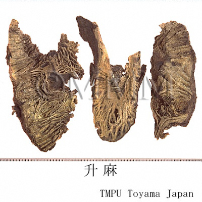 | 備考 | 中国南部でキク科 Serratula chinensis S. Moore の根が使用される(広升麻).Cimicifuga属由来の升麻中にバラ科 Aruncus sylvester Kostel の根茎が混入されることがある.近年中国では升麻としてキツネノマゴ科 Strobilanthes forrestii Diels の根茎が流通するが,偽品であり注意を要する. | ||||||