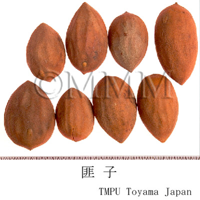 | 備考 | イチイ科/Taxaceae の Torreya grandis Fortune (香榧) およびその変種 ( -var. merrilli Hu, -var. dielsii Hu, -var. sargentii Hu et Chun, -var. non-apiculata Hu) を基源とする.日本産および韓国産榧子は カヤ Torreya nucifera Sieb. et Zucc. の種子であるが,近年はほとんど生産されない. | |||||
