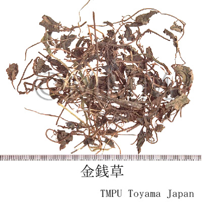 | 備考 | 現在日本で入手できる商品は香港市場品である. 中国南部諸省で胆石症や尿石症の特効薬と称して市販されている.その他,タデ科/Polygonaceae の ミズヒキ Polygonum filiforme Thunb. = P. virginianum L. var. filiforme (Thunb.) Merr.; Tovara filiformis (Thunb.) Nakai; T. virginiana (L.) Rafin. var. filiformis (Thunb.) Steward; Sunania filiformis (Thunb.) Rafin. の全草,サクラソウ科/Primulaceae の Lysimachia christinae Hance. の全草など多種の植物が金銭草と称される. | |||||