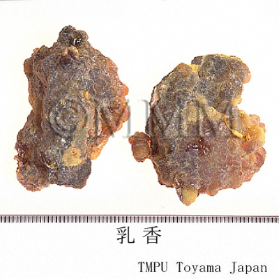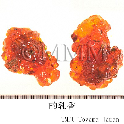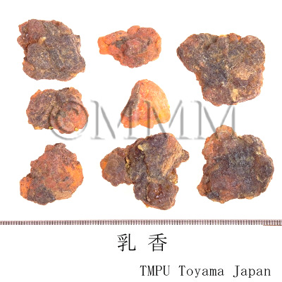 | 備考 | 春,夏両季に採集されるが,通常春季に,樹皮に下から上に向かって順次切傷をつけ,また傷口にそって小溝をつけ,傷口から滲出した樹液を溝に流入させ,数日後凝固した団塊を収集する.できるだけ樹上についているものを取る.地上に落ちたものは土砂が混入するので品質が劣る. 羊乳香:ウルシ科/Anacardiaceae の Pistacia lentiscus L.から得られる樹脂で,マスチックである. | |||||