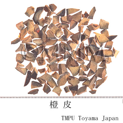 | 備考 | 『日本薬局方』では Citrus aurantium L. またはダイダイ C. aurantium L. var. daidai Makino (= C. aurantium L. subsp. amara Engler)の成熟果皮が規定される.ダイダイの極めて未熟な果実を丸のまま乾燥したものは「未熟橙実」 Aurantii Immaturi Fructus で,市場では「久丸」と称し,枳実の代用品とする.また,ナツダイダイ(俗名ナツミカン) C. natsudaidai Hayata の果皮を「夏皮」と称し,橙皮の代用とする.現在の日本市場には,ハッサク C. hassaku Hort. ex Tanaka や イヨ C. iyo Hort. ex Tanaka の果皮も流通している. | |||||