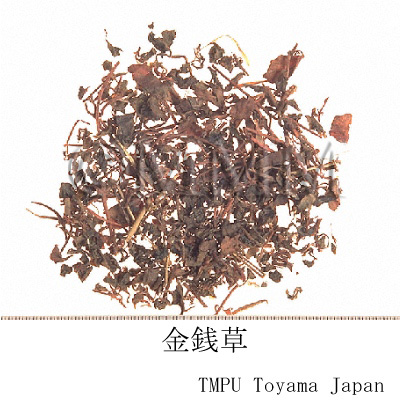 | 備考 | 現在日本で入手できる商品は香港市場品である. 中国南部諸省で胆石症や尿石症の特効薬と称して市販されている.その他,タデ科/Polygonaceae の ミズヒキ Polygonum filiforme Thunb. = P. virginianum L. var. filiforme (Thunb.) Merr.; Tovara filiformis (Thunb.) Nakai; T. virginiana (L.) Rafin. var. filiformis (Thunb.) Steward; Sunania filiformis (Thunb.) Rafin. の全草,サクラソウ科/Primulaceae の Lysimachia christinae Hance. の全草など多種の植物が金銭草と称される. | |||||