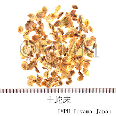 | 成分情報 | 脂肪酸 Fatty acids T. japonica (*C1): 脂肪油約 / fatty oil about 10% Petroselinic acid, Myristine, Olein モノテルペノイド Monoterpenoids C. monnieri (*C1): 精油約 / essential oil about 1.3% l-Pinene, l-Camphene, Bornyl isovalerate セスキテルペノイド Sesquiterpenoids T. japonica (*C1): 精油約 / essential oil about 1.4% alpha-Cadinene, Torilin クマリン類 Coumarins C. monnieri (*C1): Columbianadin, O-Acetylcolumbianetin, Columbianetin, O-Isovalerylcolumbianetin, Cnidiadin, Archangelicin, Edultin, 2'(S),3'(R)-Isobutyryloxy-O-acetyl-2',3'-dihydrooroselol, Bergapten, Isopimpinellin, Osthol C. monnieri (*C2): Cnidimonal, Cnidimarin, 5-Formylxanthotoxol, 2'-Deoxymeranzin hydrate, Osthol, Imperatorin, Isopimpinellin, Bergapten, Xanthotoxin, Xanthotoxol, 5-Hydroxyxanthotoxol, Auraptenol, Murrayacarpin A, Diosmetin, 7-Methoxy-8-formylcoumarin, Meranzin hydrate, Cnindimol B, Alloimperatorin, Cnidimoside | |||||