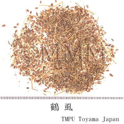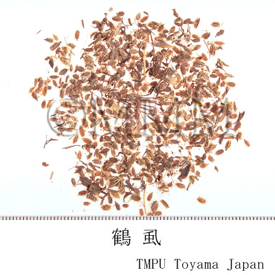 | 備考 | 貴州,陝西に主産する.天津市場で大鶴虱と称する.韓国産も同様である.その他,ガンクビソウ Carpesium divaricatum Sieb. et Zucc.,オオガンクビソウ C. macrocephalum Fr. et Sav. の花部を付した茎葉を鶴虱と称する.また,シソ科の イヌコウジュ Mosla punctulata (J. F. Gmel.) Nakai,イラクサ科 の イラクサ Urtica thunbergiana Sieb. et Zucc. または ホソバイラクサ U. angustifolia Fischer の茎葉も鶴虱と称されることがある. | |||||