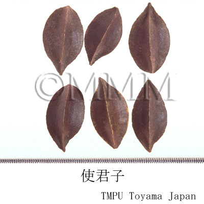 | 備考 | シクンシ Quisqualis indica L. の成熟果実を乾燥したものを 「使君子」,種子を 乾燥したものを 「君子仁」 という.四川省や海南省には葉の裏や小枝に短柔毛のある Q. indica L. var. villosa Clark が分布し,その果実も同様に用いられている. | |||||