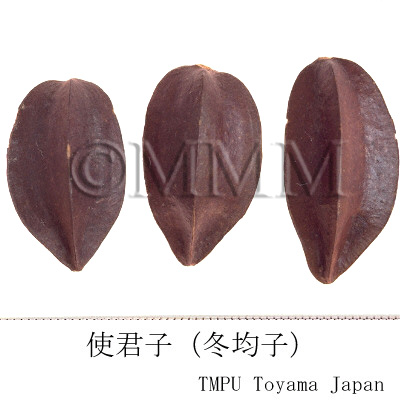 | 備考 | シクンシ Quisqualis indica L. の成熟果実を乾燥したものを 「使君子」,種子を 乾燥したものを 「君子仁」 という.四川省や海南省には葉の裏や小枝に短柔毛のある Q. indica L. var. villosa Clark が分布し,その果実も同様に用いられている. | |||||