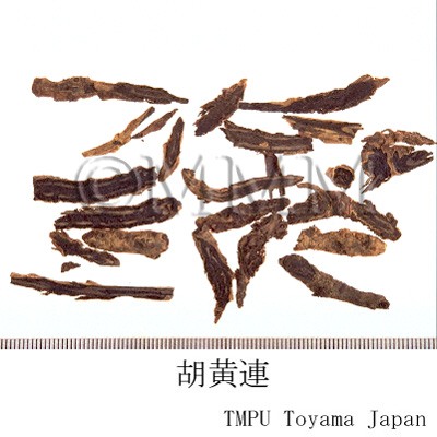 | 備考 | - 正倉院薬物の「黒黄連」は胡黄連で,このものの原植物は組織形態学(内鞘繊維の有無)及び成分化学(GC-MSによる比較)的検討から Picrorhiza scrophulariiflora であると考えられた.P. scrophulariiflora はネパール,中国のチベット自治区東南部,雲南省西北部及び四川省西部に分布する.『中華人民共和国薬典』収載品はこのものの根茎である.一方, P. kurrooa はインド,パキスタン,シッキム及びネパールなどに分布し,このものの根茎及び根はアーユルヴェーダで「Katuki」と称して黄疸,消化不良,発熱に用いられ,さらに現在では急性ウィルス性肝炎や気管支喘息にも応用されている. - 胡黄連は正倉院に納められてはいるが,大変高価で一般には入手不可能であった.そのため日本では代替品を探し,『証類本草』の附図からセンブリがこのものにあてられた.室町末期~江戸初期の頃であり,江戸初期にはそれが誤りであることに気づいている学者もいた.日本の民間薬としては代表的なセンブリ(当薬)はこうして開発された. - 中国東北諸省,朝鮮半島産の胡黄連はメギ科/Berberidaceae のタツタソウ(イトマキグサ)Jeffersonia dubia Benth. の根で 「鮮黄連」 ともいう. | |||||